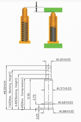 La altura de trabajo básica del Pogo Pin (conector con resorte):